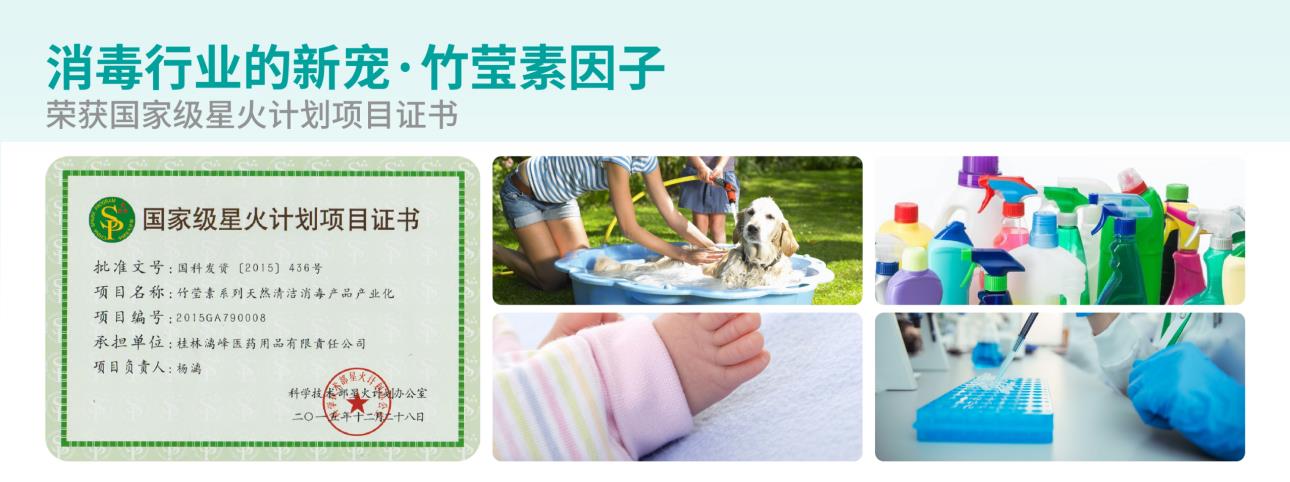 竹瑩素是從竹材中提取的純天然成分,對人體無副作用,具有廣譜抗菌性,刺激性小,對人和動物安全,適用于幼兒園、學校人群皮膚和器具表面抗菌,起到日常防疫作用。